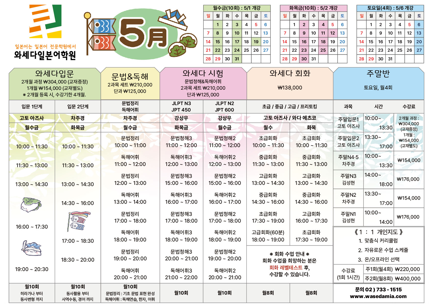 2023³â 5¿ù ½Ã°£Ç¥ (5¿ù 1ÀÏ ¿ù¿äÀÏ °³°) °ü¸®ÀÚ ¦¢ 2023-04-15 HIT 1534 |